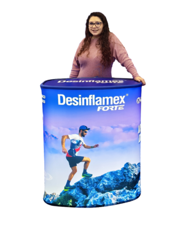 Módulos fabricados con estructuras de 100% aluminio, mesas publicitarias ligeras y altamente resistentes. Además, las gráficas son intercambiables y reusables, lo que te permite actualizarlas fácilmente para nuevos eventos sin necesidad de adquirir una nueva estructura.