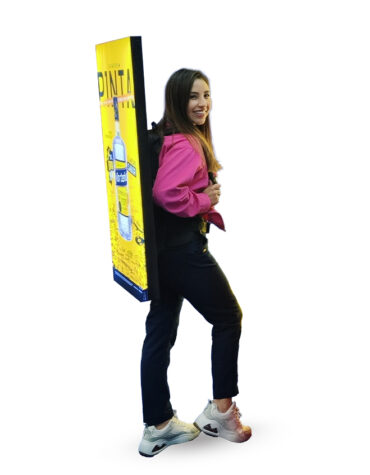 Blueink importa al país varios modelos de Human Banner o Pop Man, entre ellos tenemos, mochilas con publicidad textil en 5 modelos: